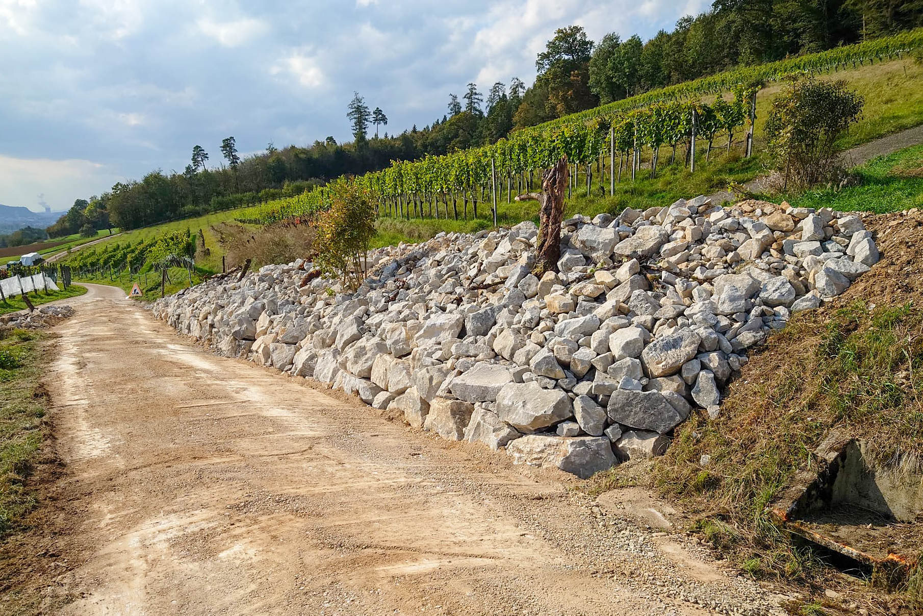 Im Rebberg Stock 18 in Auenstein wurden rund 100 Meter neue Hecken gepflanzt. Durch Steinlinsen und Asthaufen konnte die Strukturvielfalt erhöht werden. Davon profitieren seltene Vögel wie der Neuntöter und Reptilien wie die Zauneidechse. Dazu folgen mehrere Weiher, welche als Laichgewässer für die Geburtshelferkröte dienen.